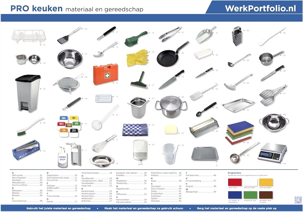 Op deze poster staan alle keukengereedschappen en materialen van PRO keuken deel 1 en 2.
